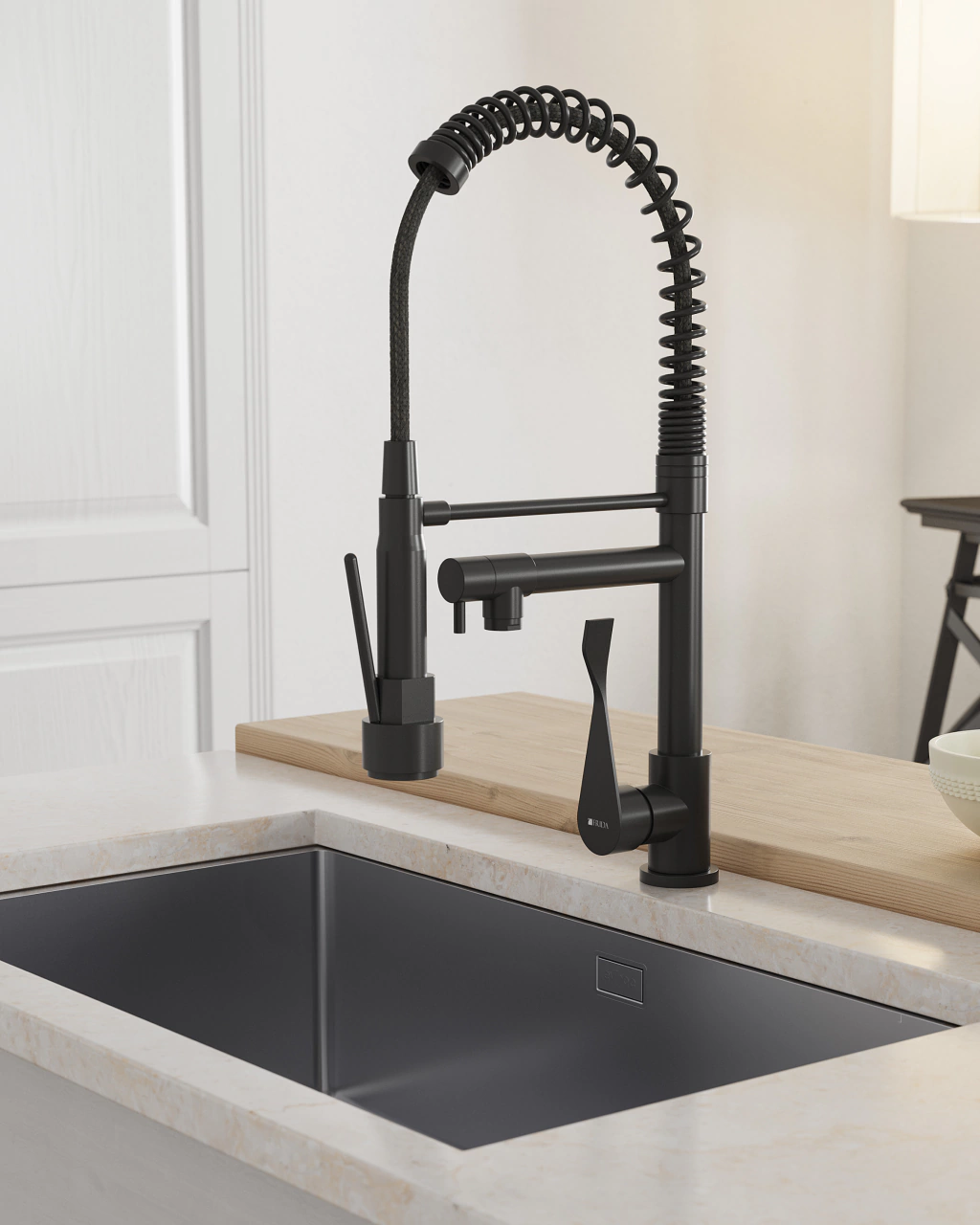 La Grifería Nilo ofrece una experiencia completa para tu cocina: funcionalidad flexible, eficiencia en el uso de agua y una estética moderna en acero inoxidable cromado inalterable.