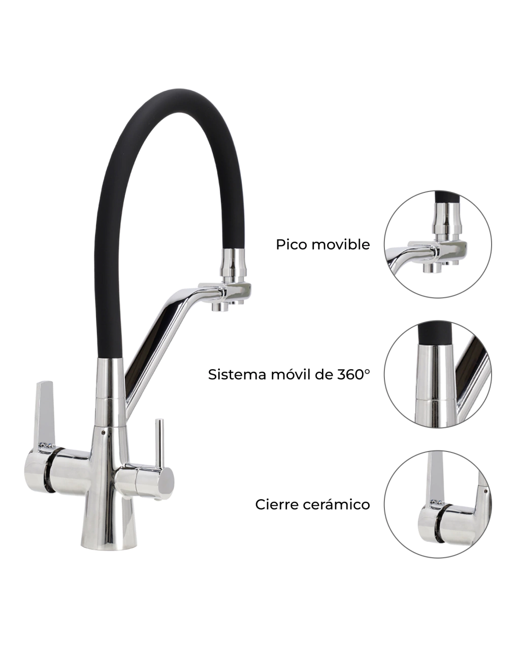 Transformá tu cocina con la Grifería Senna, un elemento que combina elegancia y funcionalidad. Este modelo de grifería monocomando está diseñado para ofrecer una experiencia de uso excepcional, gracias a su sistema móvil de 360° y su pico movible, que facilitan el acceso y la versatilidad en su aplicación.