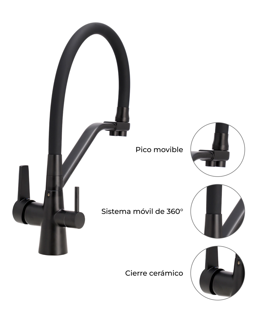 FRIDA TIP: Es ideal para cocinas con bachas dobles, ya que permite orientar el chorro en cualquier dirección y facilita tareas como enjuagar utensilios grandes o llenar recipientes con comodidad. La Grifería Senna no solo es un elemento práctico, sino también un componente decorativo que realza tu cocina.